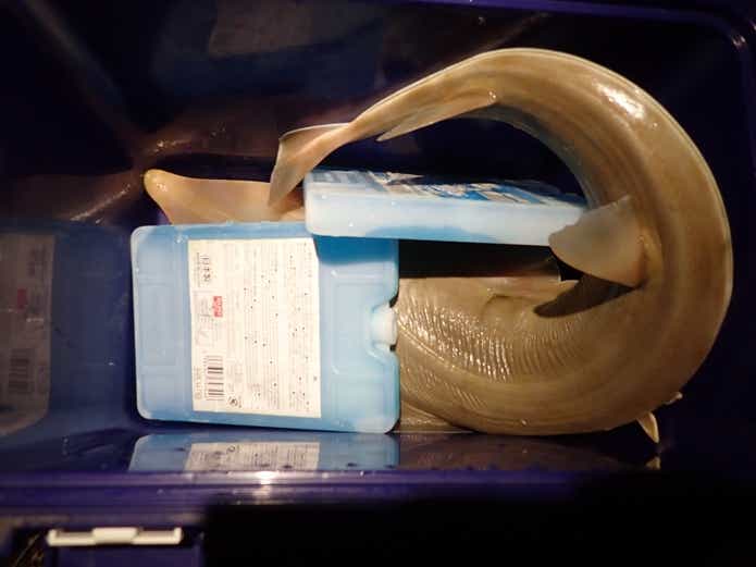 クーラーにサカタザメ