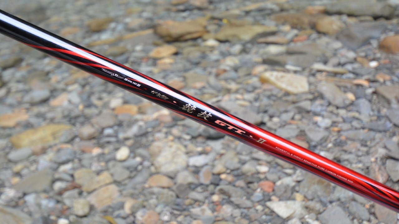 ソリッドトップ穂先は強めのテンションをかけてもオトリが弱りにくく、底を切って動かしたいときにもオトリが底で粘り、動くまいと尾ビレを振ってくれるのが自身の釣りに合っているという。がまかつからS2ソリッドトップ穂先を搭載したサオが登場した10年ほど前に初めて使って釣果が明確に変わったのを実感し、それ以来なくてはならない存在になっている。