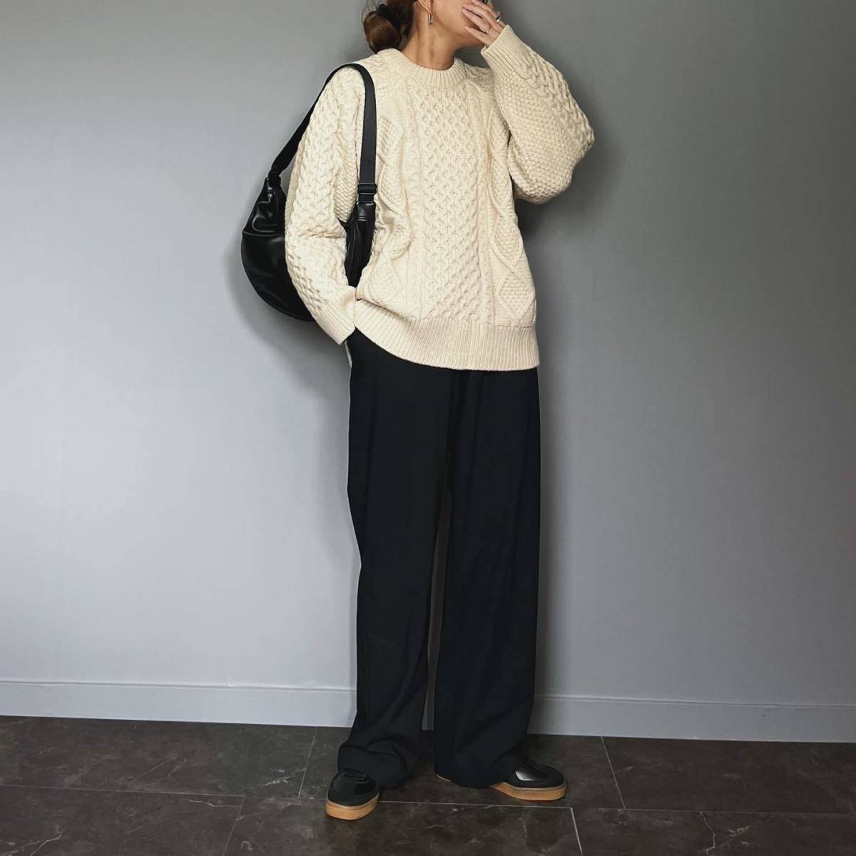 そこでおすすめしたいのが、白ニットを合わせたモノトーンコーデです!