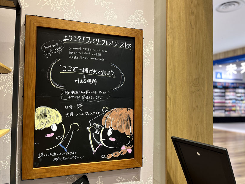 親子で楽しめるイベント情報は店内ボードでも確認できます。