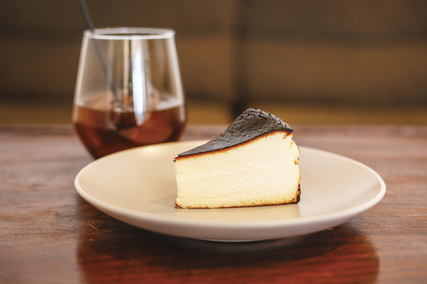 「自家製バスクチーズケーキ」は、トロっとあふれ出す濃厚なチーズ生地と、こんがり香ばしく焼き上げた表面のギャップが人気です。シーズンごとに、期間限定のバスクチーズケーキも登場。