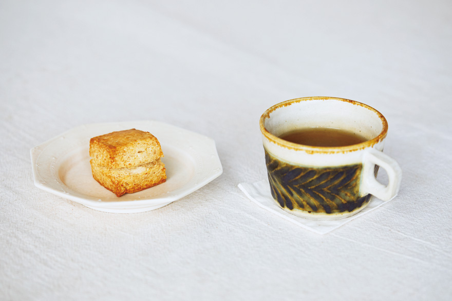 「全粒粉入りスコーン」(350円)と「オリジナルハーブティー(冬秋ブレンド)」(650円)