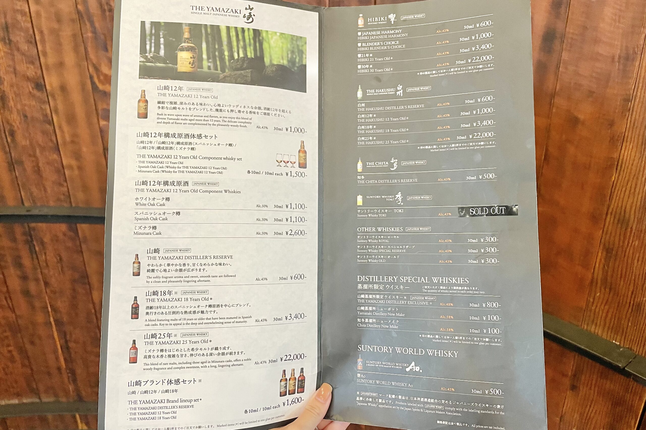 試飲では「山崎12年」や希少なモルト原酒が味わえる贅沢な内容です。