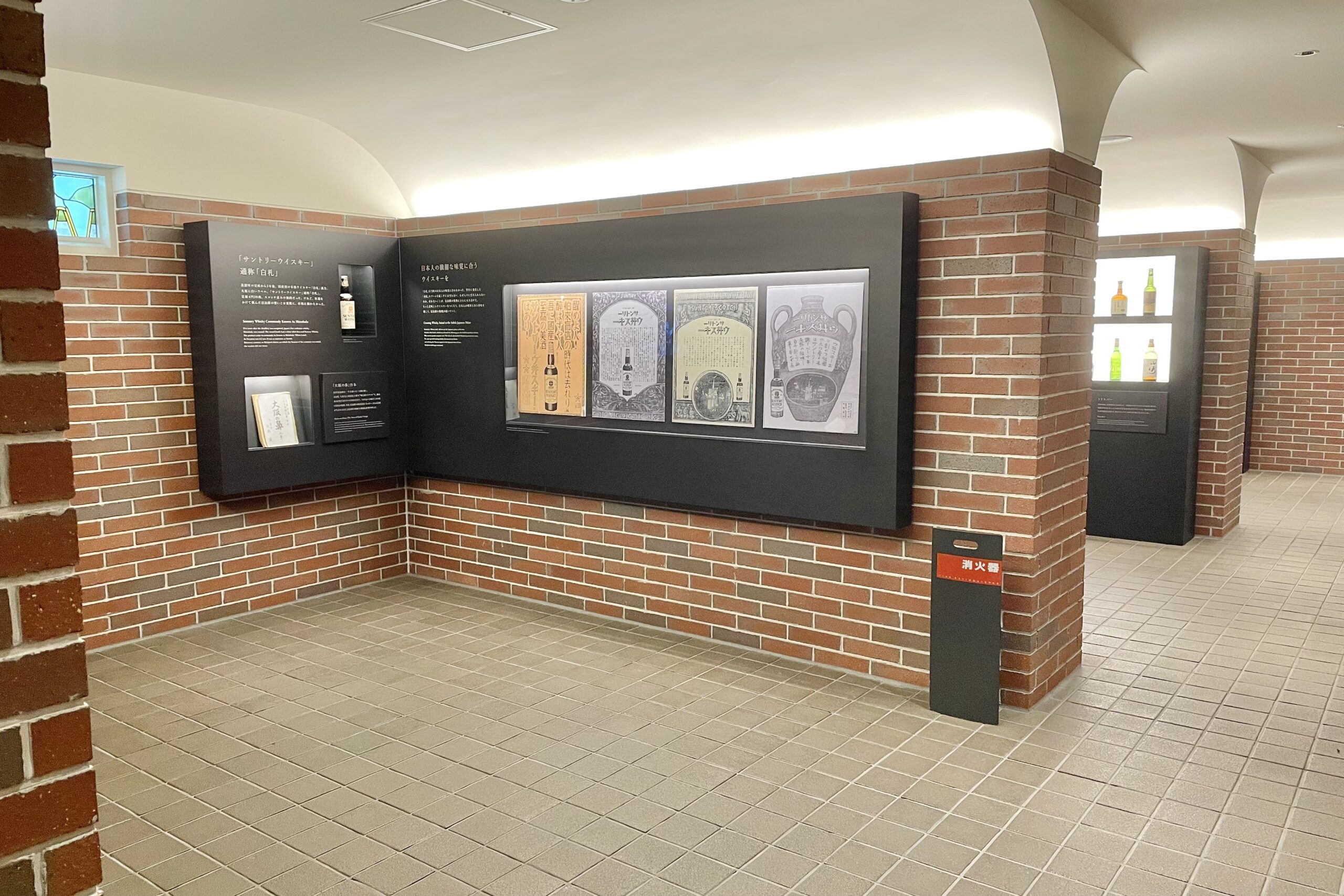 過去に造られたウイスキー瓶や、当時の広告ポスターも展示されています。