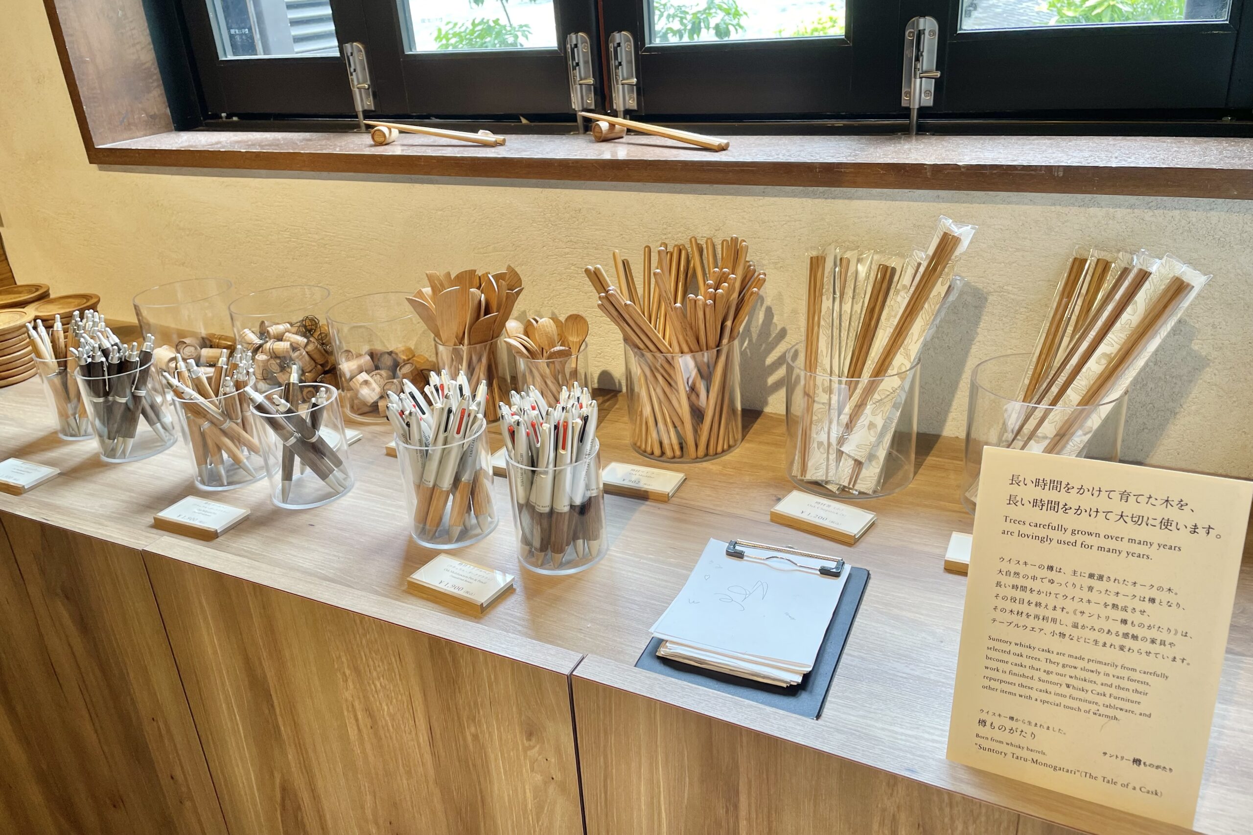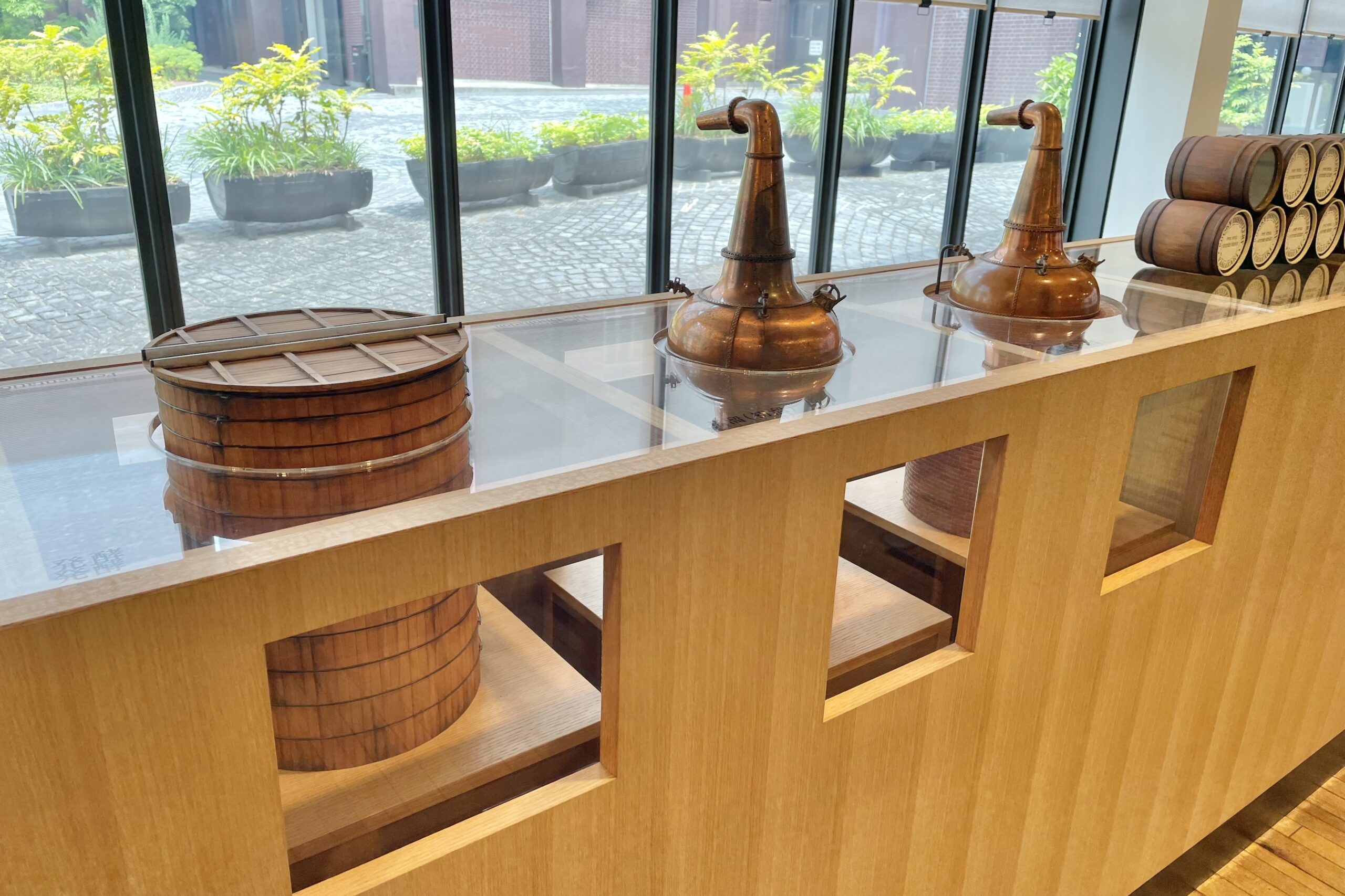 蒸留所敷地内にある「山崎ウイスキー館」は、展示やショップ、有料テイスティングラウンジなどが楽しめるスポット。