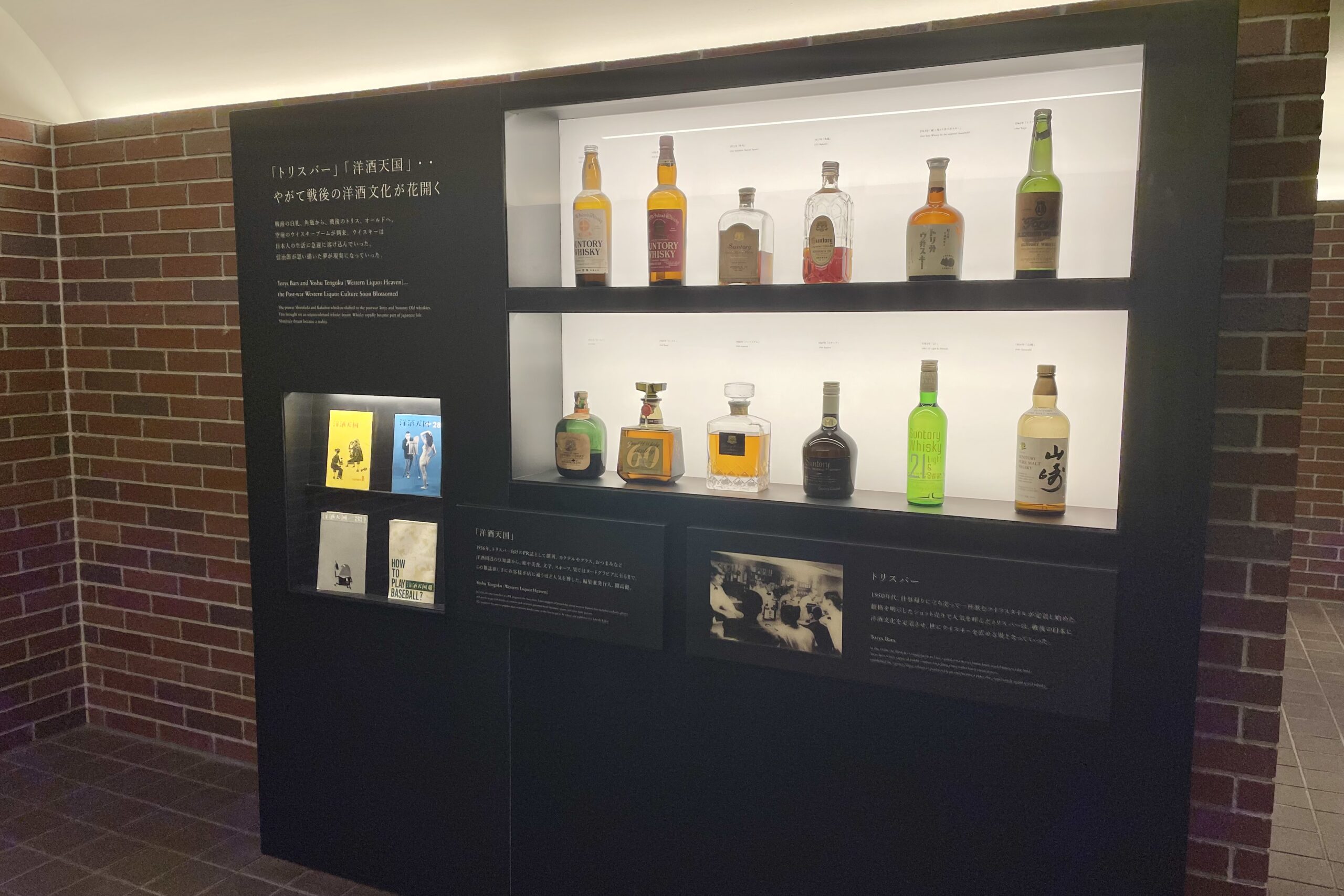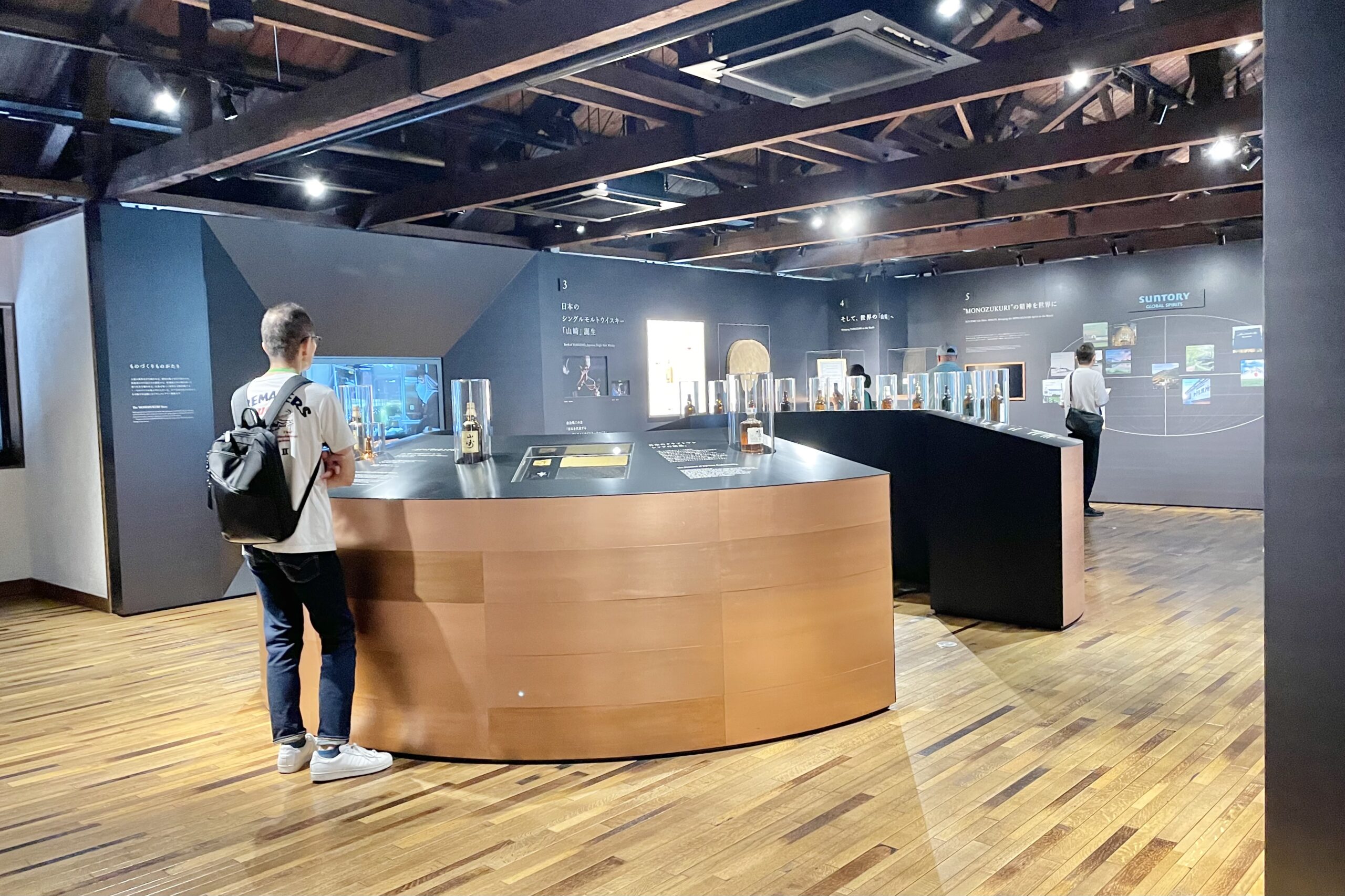 展示コーナーは1階と2階に分かれています。1階では、日本のウイスキーの始まりやサントリーウイスキーの歩みを紹介。
