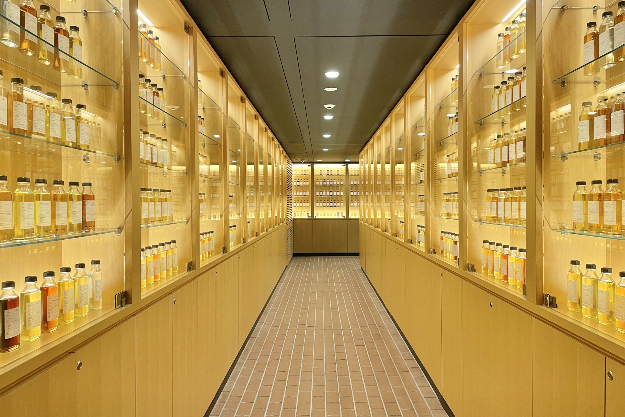 ちなみにこのテイスティングラウンジ、ポットスチルの裏の部分には、ウイスキーの原酒が入った瓶が並ぶ通路が。