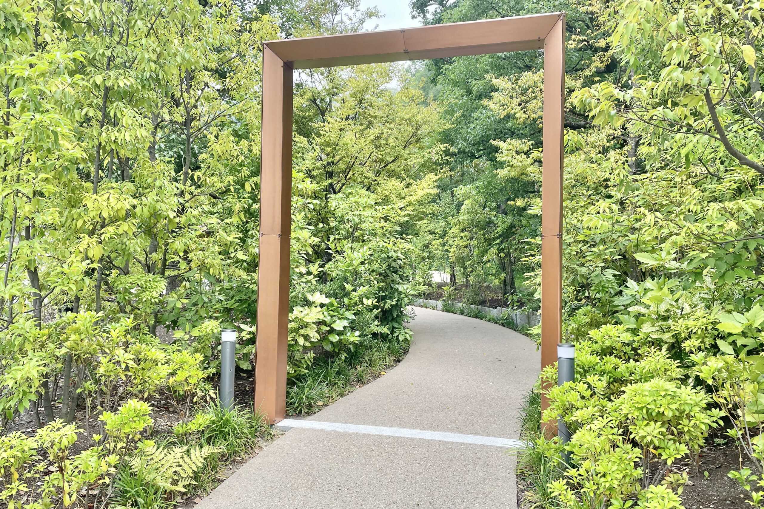 まず、敷地内に入るときにくぐるのが、この象徴的なゲート。額縁のように四角く形どられたゲートをくぐると、まるで異世界へと一歩足を踏み入れたような感覚になります。