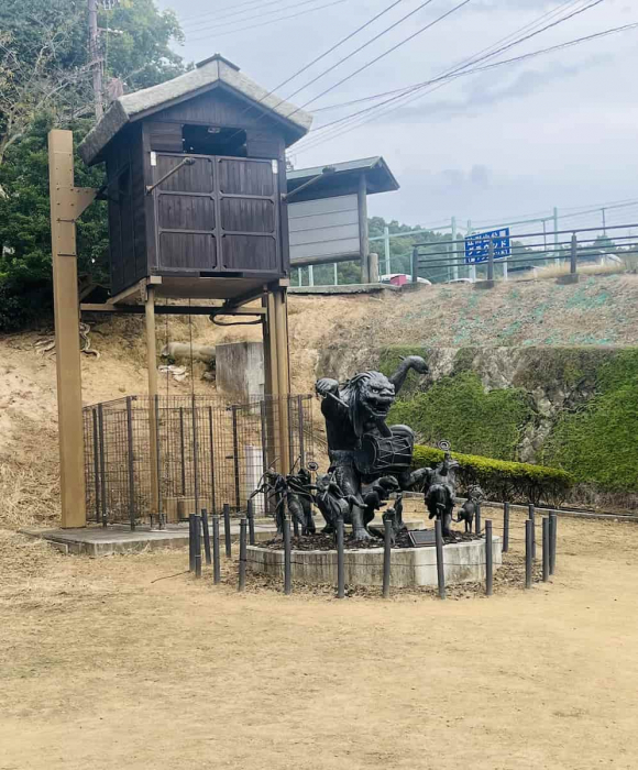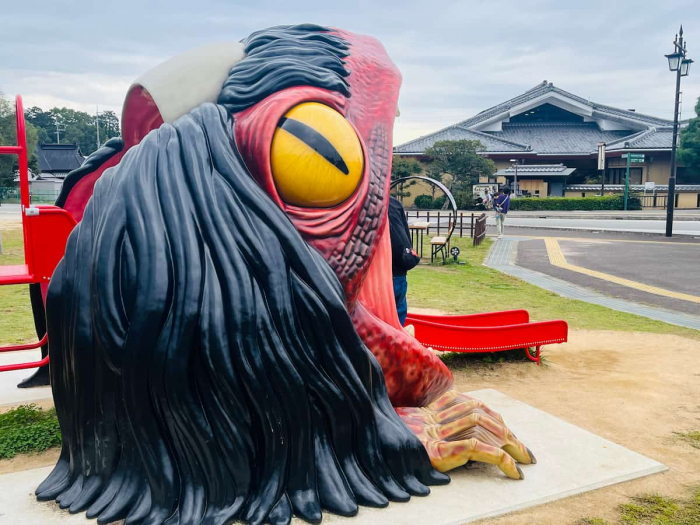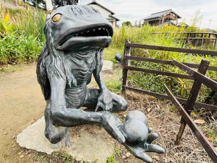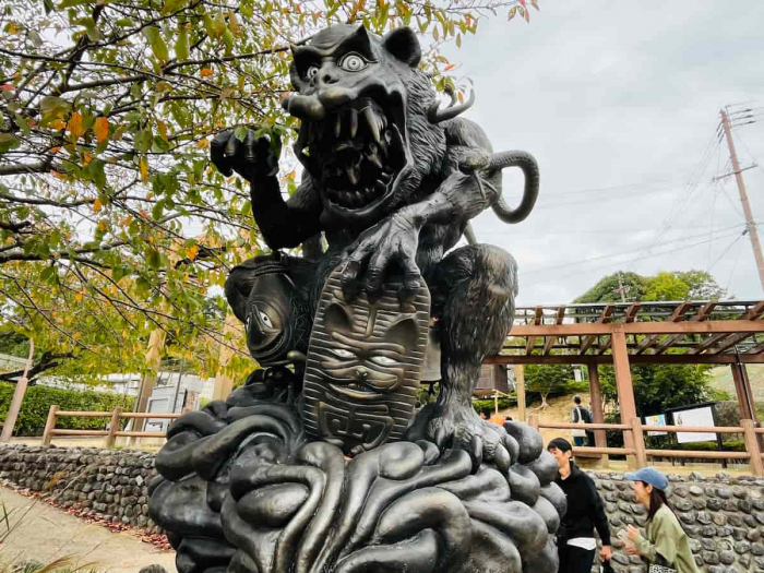 辻川山公園には、ガジロウや天狗のほかにも妖怪の像がいくつもあります。大きな像は迫力満点!角度や構図次第では、SNS映え間違いなしの一枚も撮れます。
