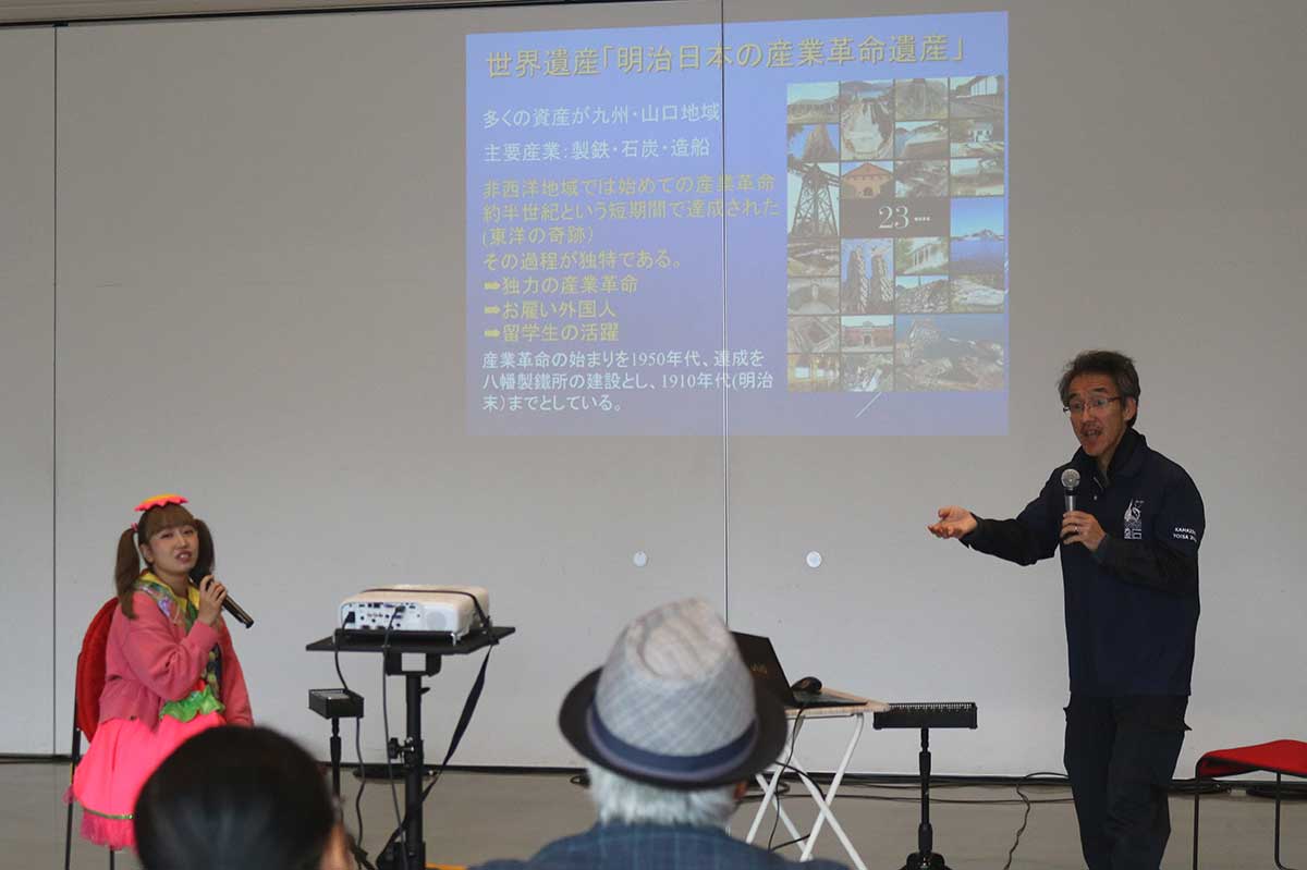 釜石市教委文化財課世界遺産室長の森一欽さんは、明治日本の産業革命遺産について「イギリス、フランスでは約200年かかった産業革命を、日本では60年ぐらいで成し遂げている」と、その価値を示した。同遺産は「製鉄・製鋼」「造船」「石炭」の3分野を基盤に急速な発展を遂げていく過程を3段階で示す。①試行錯誤の挑戦…萩や韮山の反射炉建設、大島高任が蘭学書を頼りに釜石で高炉を建設し、鉄鉱石からの鉄づくりに成功した時期。②西洋の科学技術の導入…外国人技術者の招へいによって西洋の科学技術導入が進み、長崎の造船、石炭産業が発展していく時期。③産業基盤の確立…釜石のコークス炉の技術を導入した官営八幡製鉄所が成功。長崎(端島)、三池の石炭産業が近代化され、日本が国際水準に達していく時期。森さんは釜石と他の遺産エリアとのつながりも紹介。製鉄では「近代製鉄発祥は釜石。達成は八幡」と覚えやすいフレーズを残した。