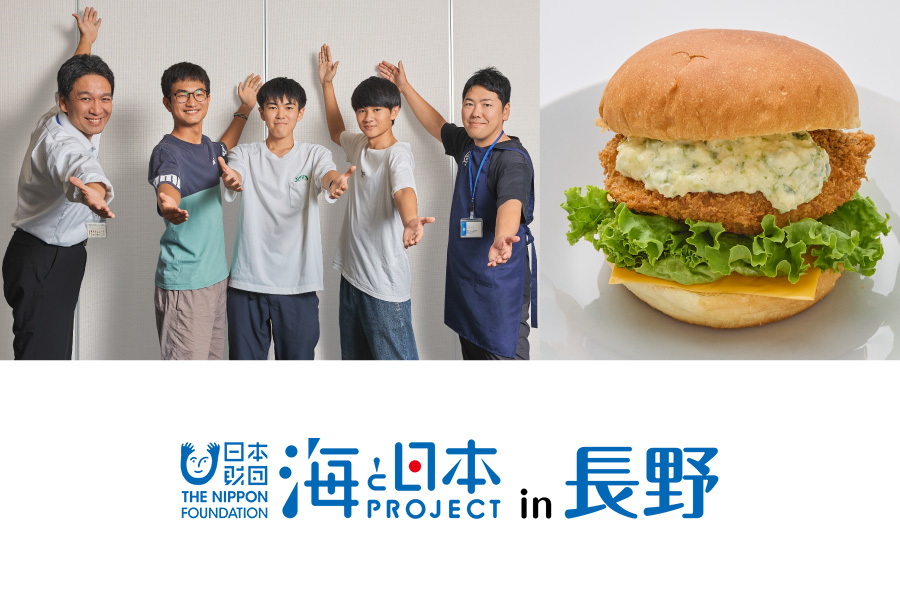 「能登ブリかがやきバーガー」は、松本県ヶ丘高校(松本市)の「縣陵政経研究会」の高校生3人と、綿半のシェフが共同開発したグルメバーガーです。