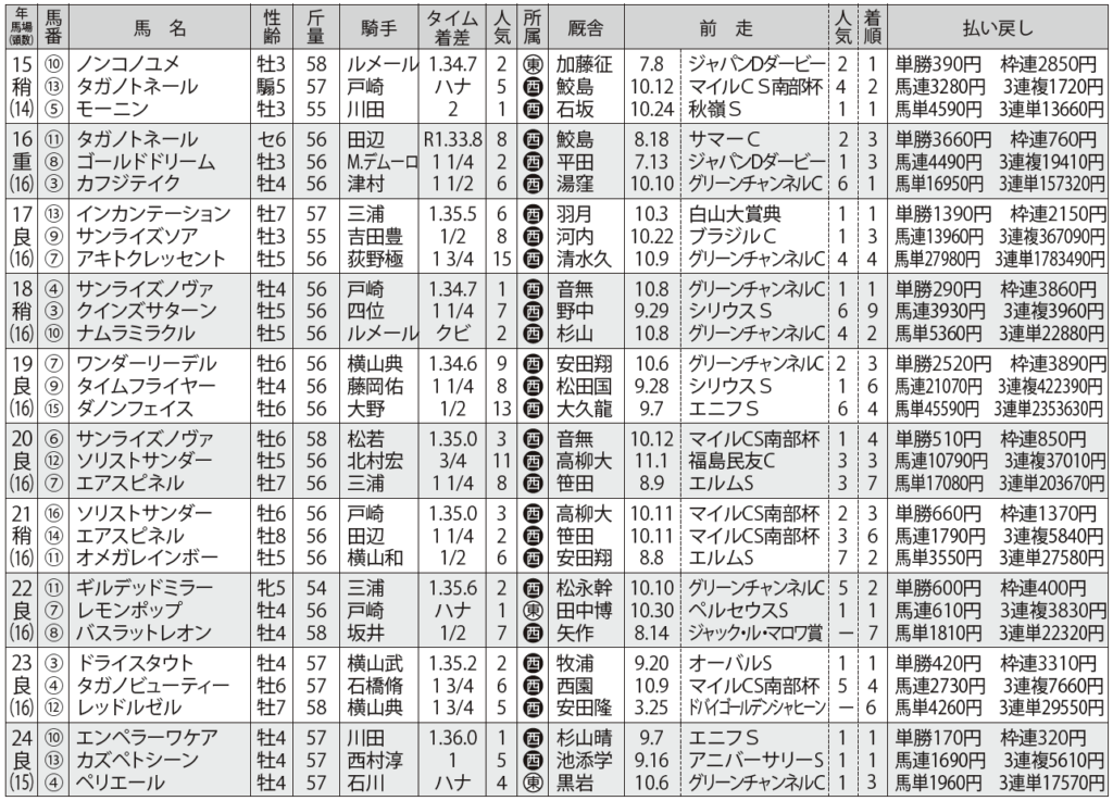 武蔵野S 過去10年のデータ