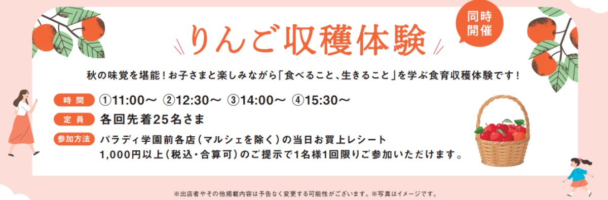 今回は『リンゴ収穫体験』と『マルシェ』(6店舗)が集結!
