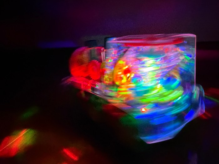 いきなり凄かったのでちょっとビックリしてしまいました。あらためて部屋を暗くしてから動きを確認したい。スイッチを入れたらキラキラと光って……