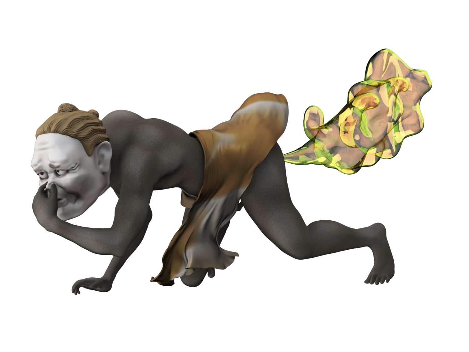 凄まじい悪臭を放つ屁を無尽蔵に噴き出し、人を苦しめる忌まわしい怪物とされる。
