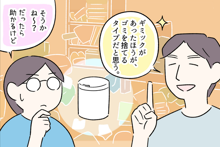 私が「何も言わなくても使うかな?」と聞くと、夫は笑いながら「見れば分かるでしょ。コウはこういうギミックがあったほうが、ゴミを捨てるタイプだと思う」と返してきました。