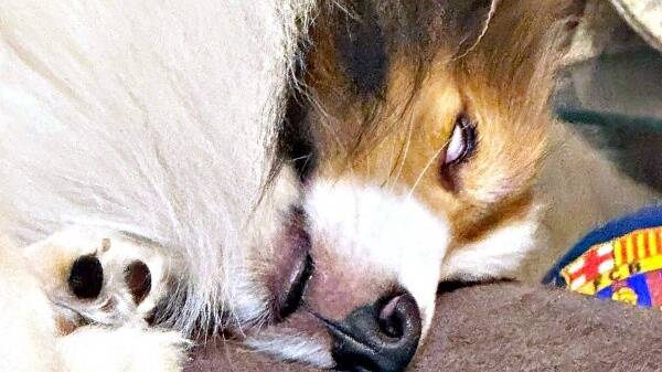 ナイトくんは、食べることと寝ることが大好きな、おっとりマイペースな性格の男の子。先住犬のアイリスちゃんと毎日楽しく遊んで過ごしているそうですが、実は元繁殖引退犬で、今年の5月に家族の一員になったばかり。そのため、今年が初めての床暖房体験となったのです。