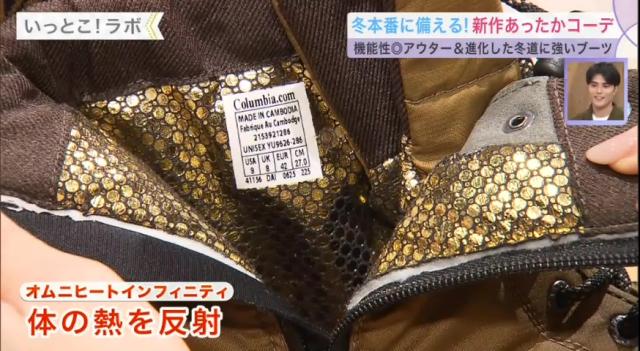 靴の中は、コロンビア独自の“オムニヒートインフィニティ”という素材を使用。