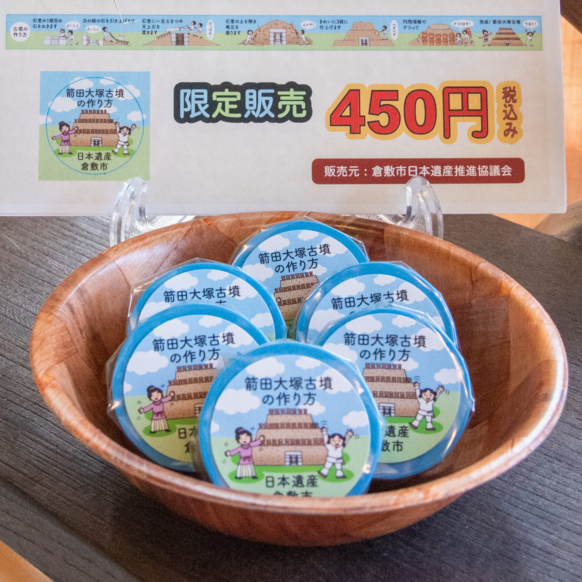 箭田大塚古墳を見学した後は、近くにあるまきび公園に立ち寄ってみてください。公園内のたけのこ茶屋には、箭田大塚古墳オリジナルのマスキングテープやスタンプもあるので、お土産にも良さそうです。
