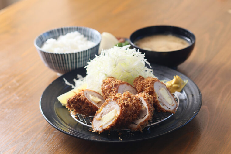 脂身が少なく、あっさりとしたヒレ肉を使った『チーズ巻きヒレかつ定食』も提供しています。