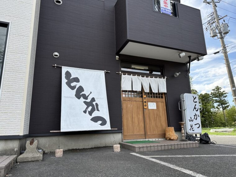 安田ICのそばにあるとんかつ山花は、連日行列ができ、休日には県外からもお客が訪れる人気のトンカツ店です。