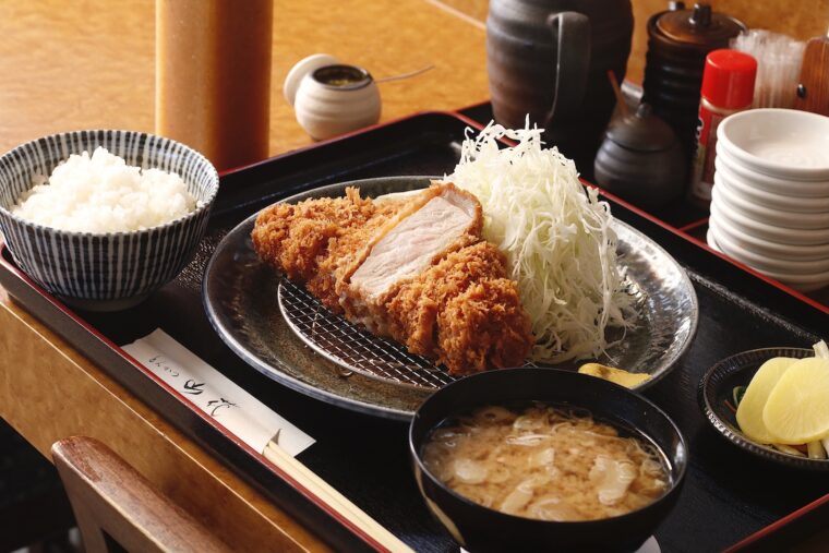 『大エビフライ定食』(2本1,650円)や『メンチカツ定食』(880円)など、豊富な揚げ物メニューが揃うなか、圧倒的な人気を誇るのが『厚切りロースカツ定食』。