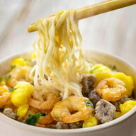 小麦の殻まですべて入った全粒粉の麺は、風味が強くスープによくからみます。