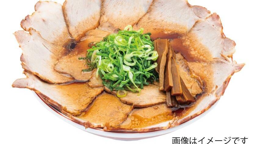 「醤油豚骨ベースのコク旨スープとコシのある平打ち麺に、大ぶりのプレミアム焼豚や白ネギ、チンゲン菜などをトッピング。
