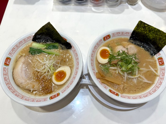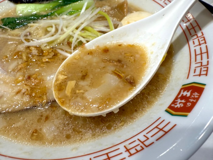 そしてスープはというと、こちらも違いはほぼ無いと言っていいだろう。というのも、どちらも豚骨しょう油ベースのスープであり、違いはそれこそ「フライドオニオン焦がし葱油」くらいだろう。