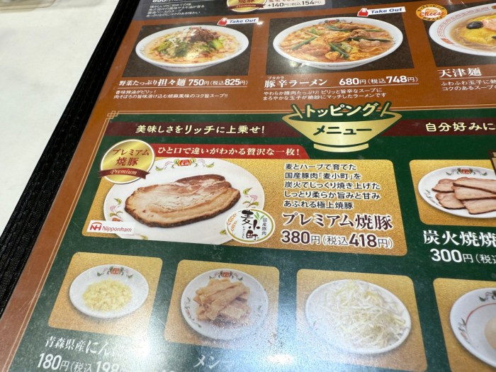 注目は「プレミアム焼豚」で、トッピングだと1枚418円となかなか強気な価格設定。『極王餃子の王将ラーメン』は980円なので、プレミアム焼豚が目玉の1つであることは間違いない。