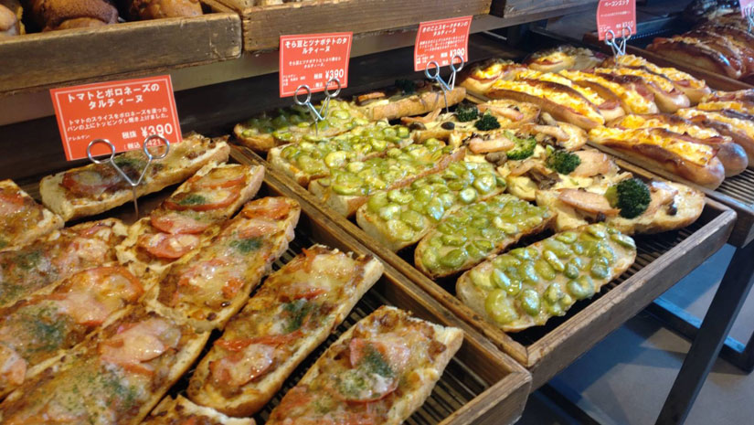 自家製の具材がたっぷりの調理パンも並びます。写真は「タルティーヌ」各種。