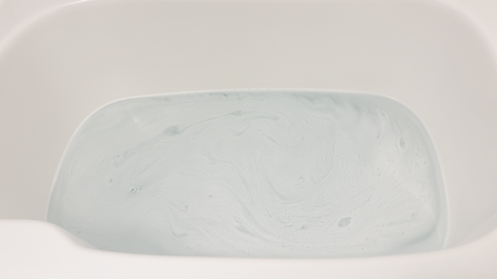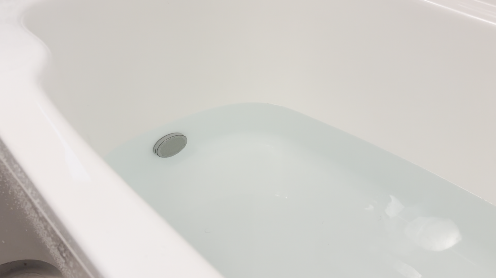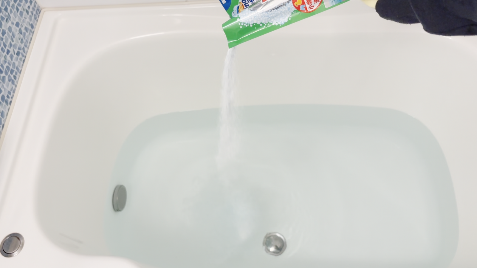 配管の穴がしっかり浸かるように、穴の上5cmほどの深さまでお湯を張ります。入浴剤が入っていないなら残り湯でもOKです。