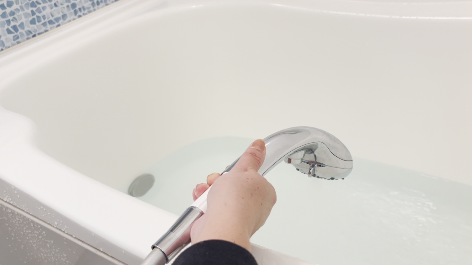 水をすべて排水し、蛇口やシャワーから水をため直します(自動運転は使いません)。もう一度5分ほど追いだきをしてすすいだら、最後に排水して完了です。