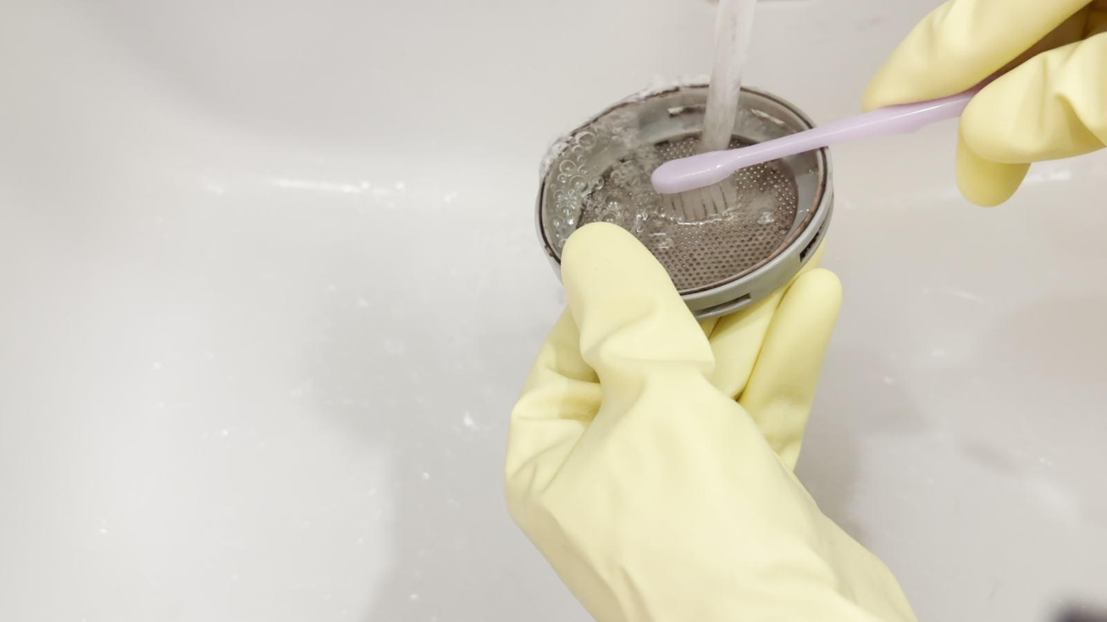 ブラシでやさしく水洗いし、細かなゴミをかき出したら、しっかりすすいで元の位置へ戻します。
