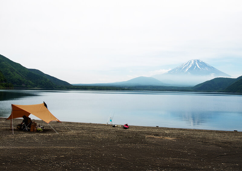 「浩庵キャンプ場」は本栖湖の湖畔にあるキャンプ場で、富士山を眺めながらのキャンプに加えて、さまざまなアクティビティを楽しむことができる場所。富士山を眼前に、穏やかな水面をSUPで漕ぎ進めるのは格別です。キャンプ場にはSUPの体験やレンタル(有料)もあります。