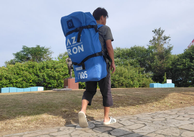 キャンププラスSUPには、空気で膨らませることのできる「インフレータブルタイプ」がおススメです。テントやタープなどキャンプにはたくさんの道具が必要ですが、それらにプラスしてSUPを車に積んだり運んだりするのは大変です。インフレータブルタイプのSUPならコンパクトに折り畳むことができ、背負って持ち運ぶこともできます。