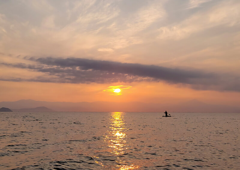 静かな水面にゆっくりとパドルを入れ、徐々に明るくなる空を見上げながら、日の出を待ちます。やがて優しい色の朝焼けが始まり、ゆっくりと太陽が顔を出すと、朱色の道が水面に伸びてきます。そんな絶景のなか、静寂で神聖な時間を1人占めするのは本当に気分爽快。リフレッシュできること間違いありません。