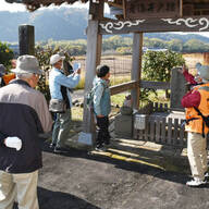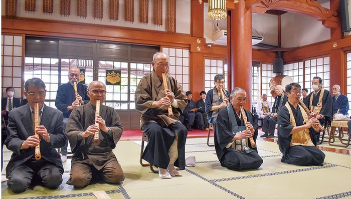 以来、奉賛会では尺八文化を後世に伝えようと本覚寺で定期的に献奏会を行っているほか、5年に一度、虚無僧姿での練り歩きも実施している。5年前はコロナ禍で開催を見送ったため、今回は碑の建立から25周年を記念し、10年ぶりの実施となった。