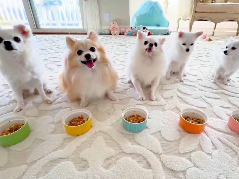 お行儀よく並んでごはんを待つ5匹のポメチワさんたち。いざ、食べようとしたら…想定外だったまさかの展開は記事執筆時点で23万回を超えて表示されており、多くの反響が寄せられることとなりました。
