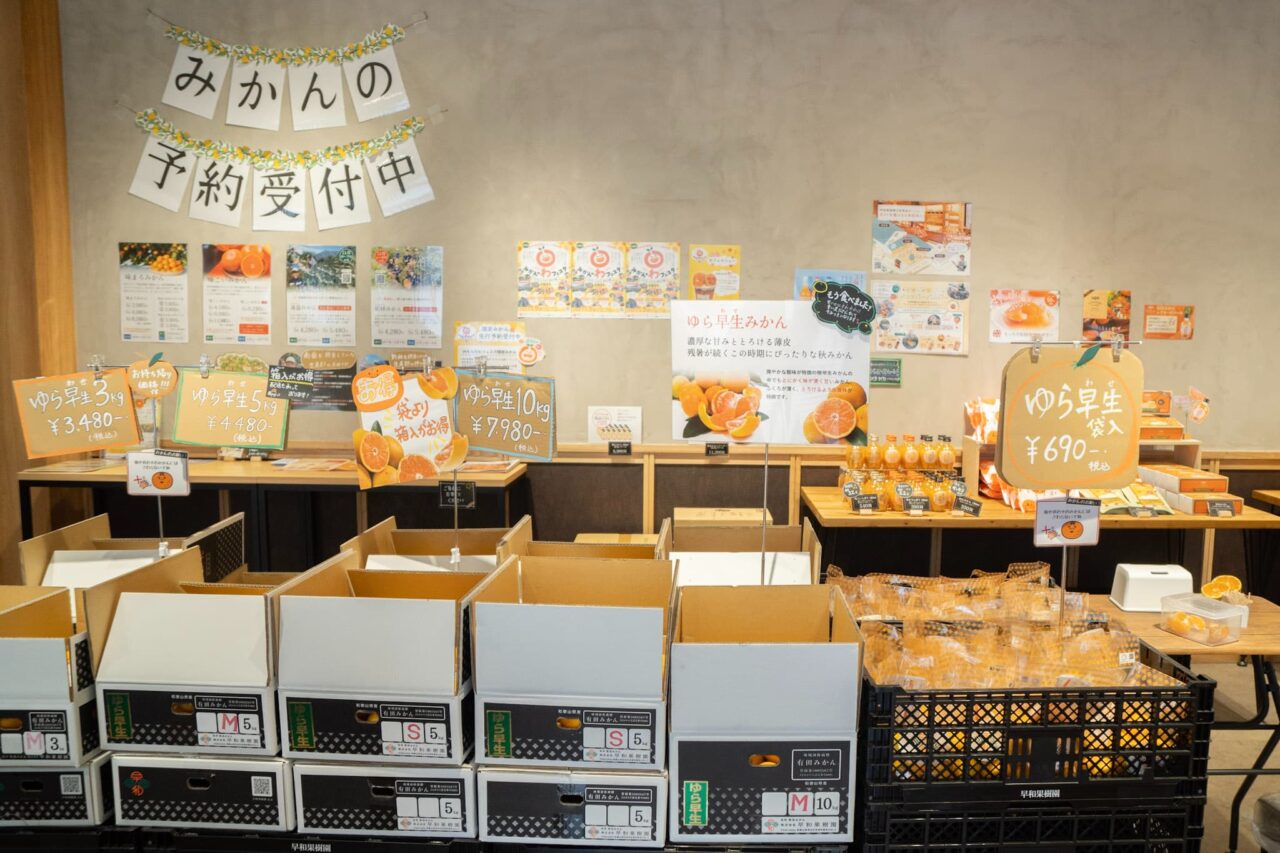 みかんの販売は、本社店の向かいにあるカフェ「果汁と果実」に併設するショップで行っています。