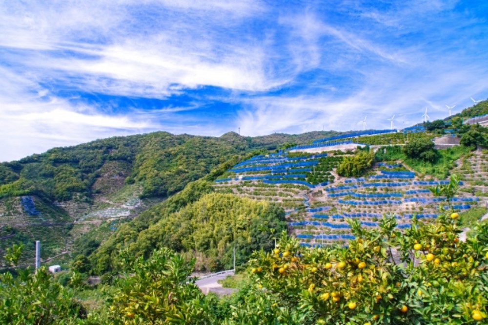 一年を通して温暖で雨が少なく、気候が非常にミカン栽培に適しています。平地の少ない有田地域では、山の斜面に段々畑が広がる光景は壮観。太陽の光をたっぷりと浴びて実ったミカンはコクのある甘さと濃厚な味わいが特徴です。