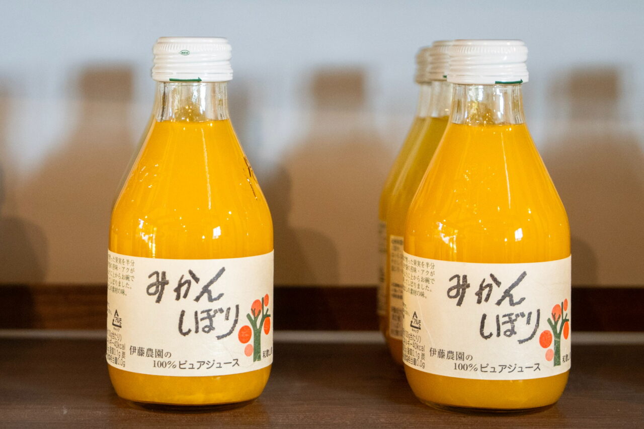みかんジュースは、ひとつひとつ手作業で皮をむいてから搾るため、皮の渋みや雑味がなく、みかん果実そのものの甘みを味わえます。糖度別に「飲むみかん」「味まろしぼり」「味こいしぼり」の3種類があるので、それぞれの甘さやコクの違いを堪能して。