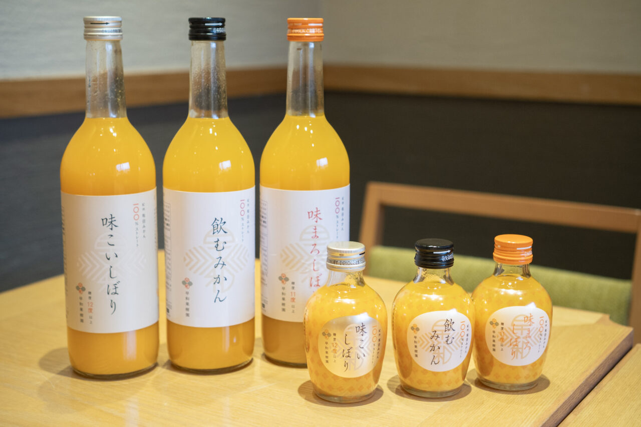 ころんとした丸いシルエットの瓶が特徴のジュース「飲むみかん」でお馴染みの早和果樹園。その本社に併設された直営ショップ「早和果樹園 本社店」は、有田ICから車で約10分というアクセスの良さから、県外から足を運ぶ人も多いそう。