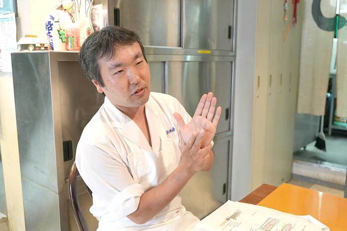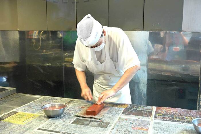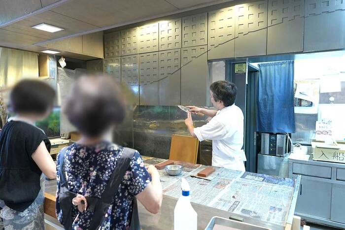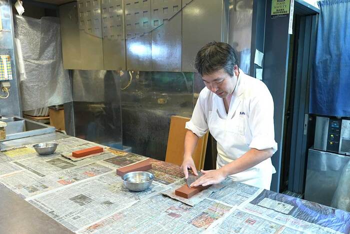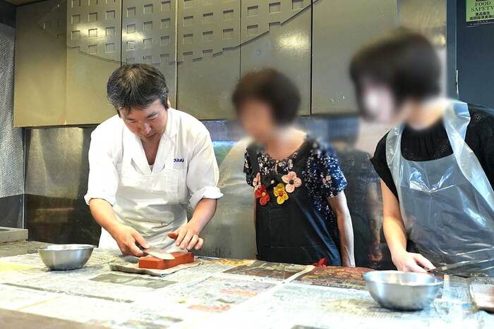 料理人さん、余裕の顔で包丁の刃をペタペタ触っててちょっとビックリ(笑)