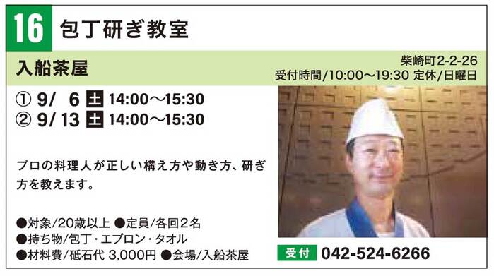ちなみに、今回参加した「包丁研ぎ教室」の次回開催は9月13日(土)14:00~15:30。