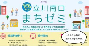 立川南口まちゼミ公式サイト( https://tachikawa-minami.com/festa/semi.html )あわせて読みたい