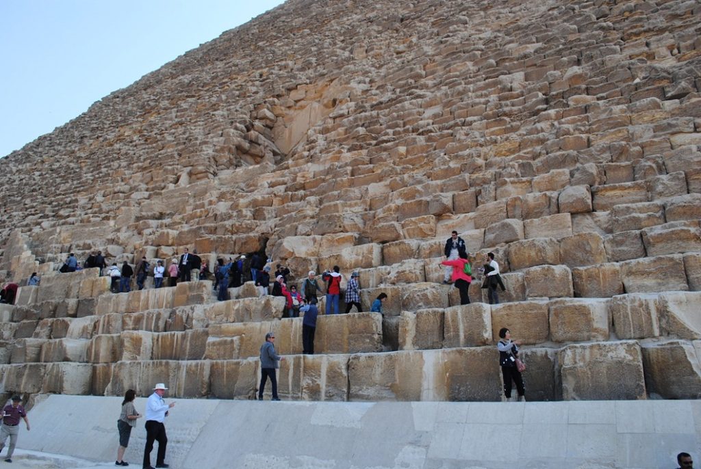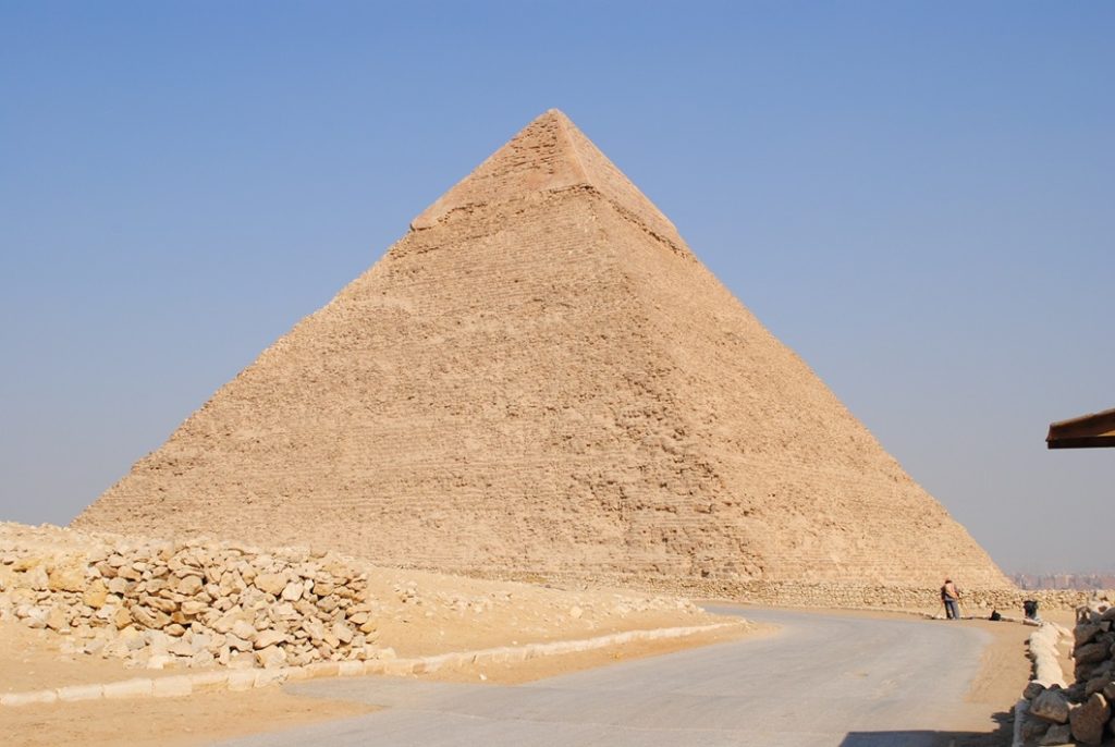 チケット売り場を通ると、すぐ南にクフ王のピラミッドがある。