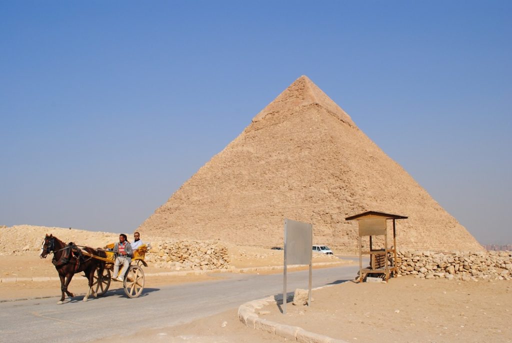 その乾いた砂漠の地、ナイル川左岸のギザに、観光客に人気のスフィンクスがあり、有名な3大ピラミッドが建っている。
