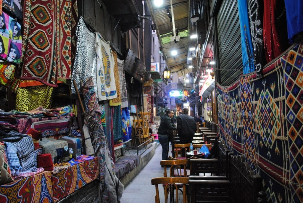 観光客で大にぎわいのバザール内を歩くと、道の両側には、貴金属、工芸品、スパイスや絨毯(じゅうたん)、それにツタンカーメンなどが描かれたパピルスを売る様々な店がひしめき合って並んでいる。