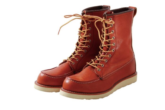 RED WINGを代表するモデルのひとつ「877」はオロ レガシーと呼ばれる独自の赤茶レザーが印象的。1952年にハンティングブーツとして誕生した8インチのブーツは、1990年代の日本においてファッション界を席巻する。